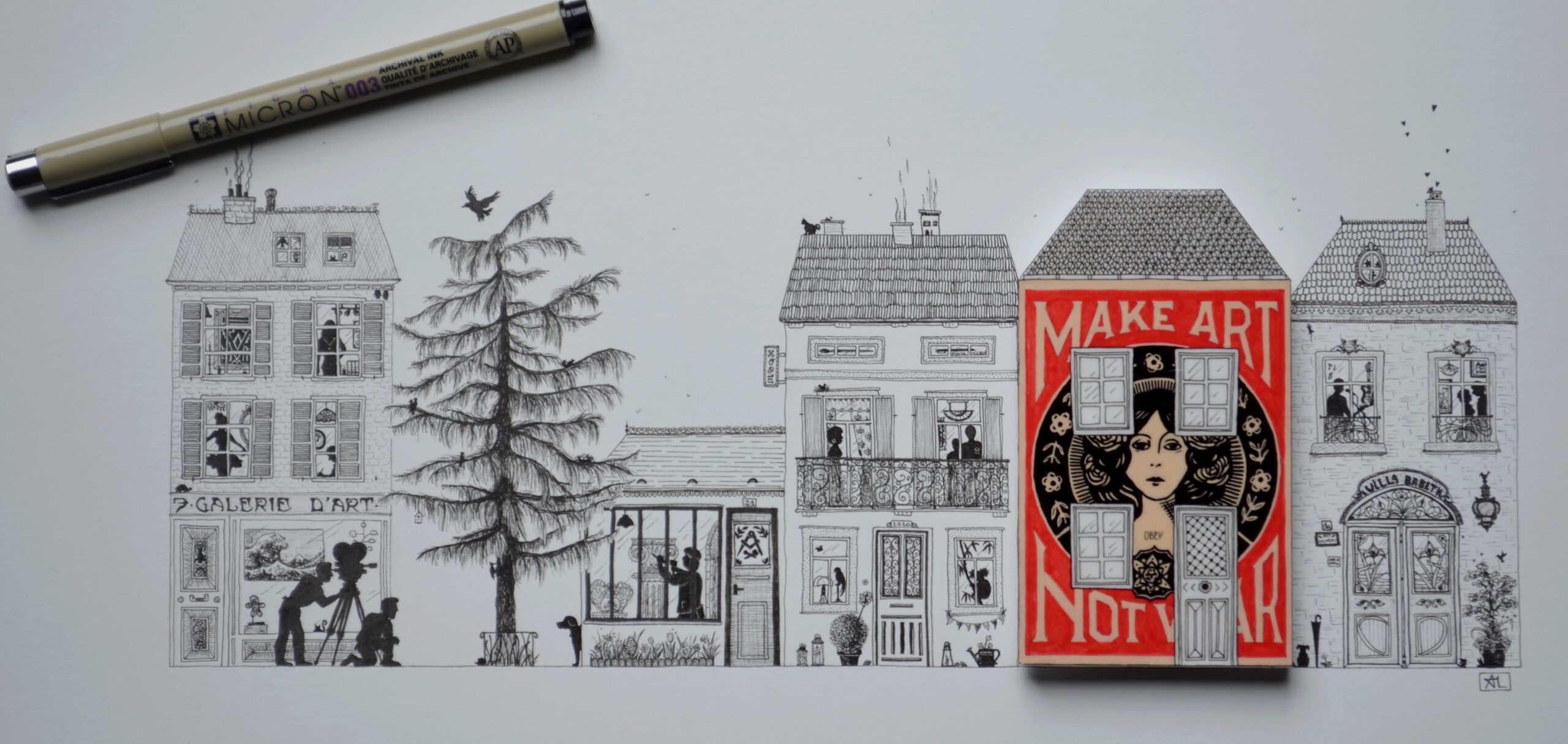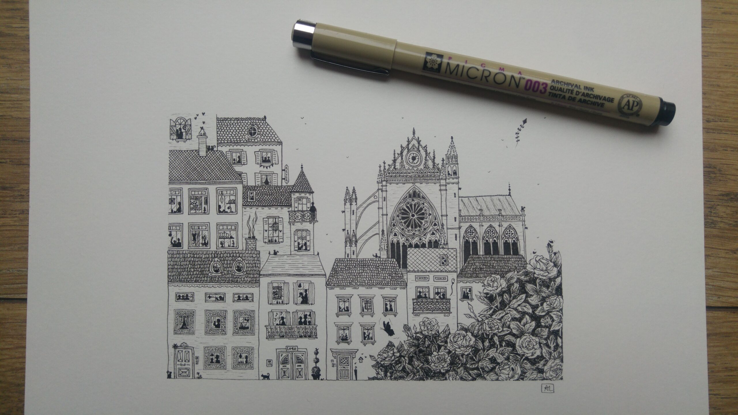 à l'encre et au stylo pointe extra fine,
