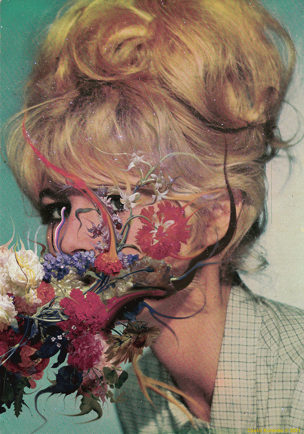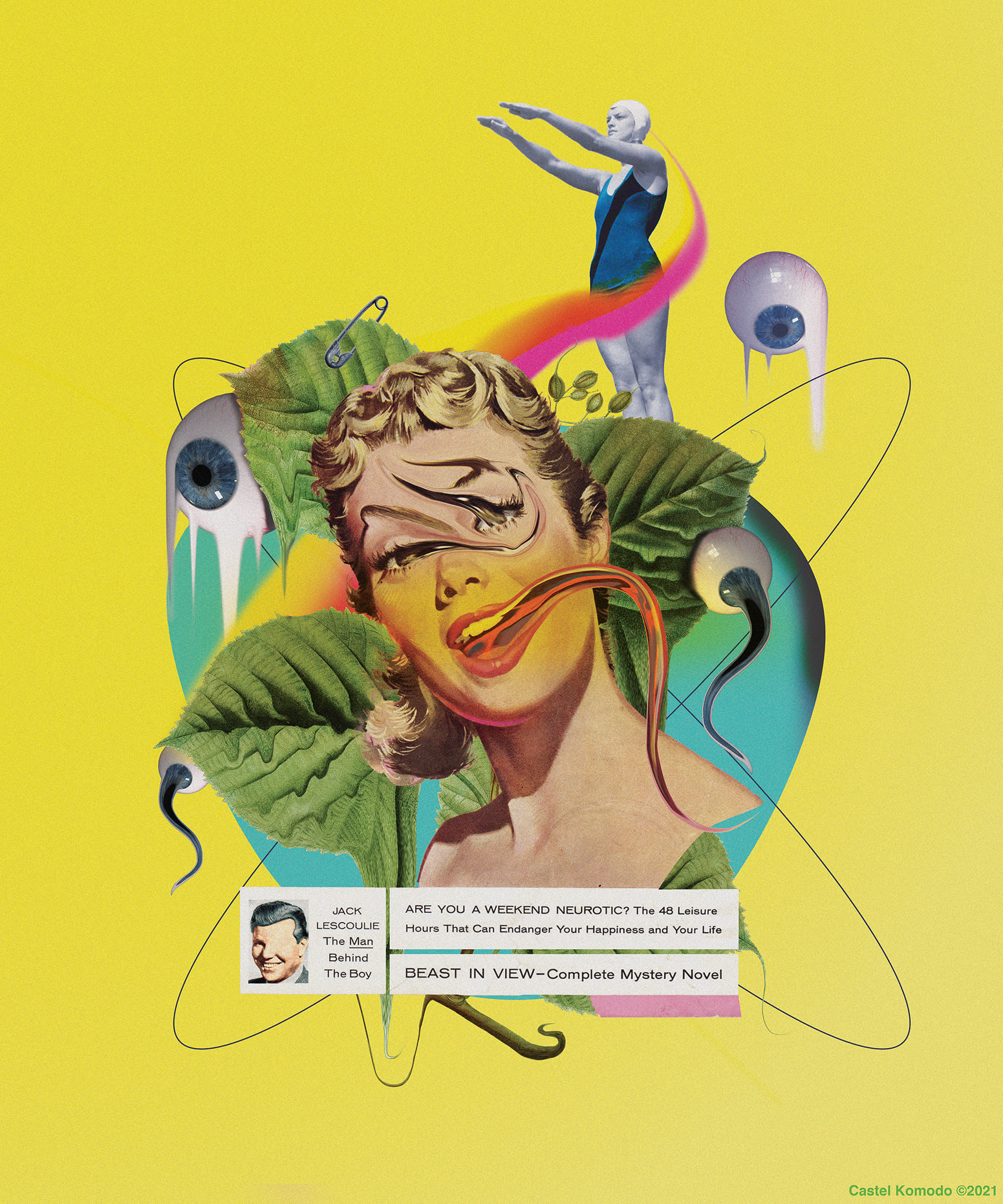 Graphiste de formation, Julien Berzi est un artiste vous invitant dans un univers à la fois surréaliste et coloré. Son processus de création commence par la recherche de vieux magazines des années 60 : « National Géographic, LIfe Magazine, etc…». Il pioche bien souvent dans les magazines trouvés sur les brocantes ou directement sur Internet. Après cela, il découpe toutes ces images sur ordinateur pour en créer une composition unique qu’il intitulera de «Collage Numérique» (WE ARE THE COLLAGE MAKERS).