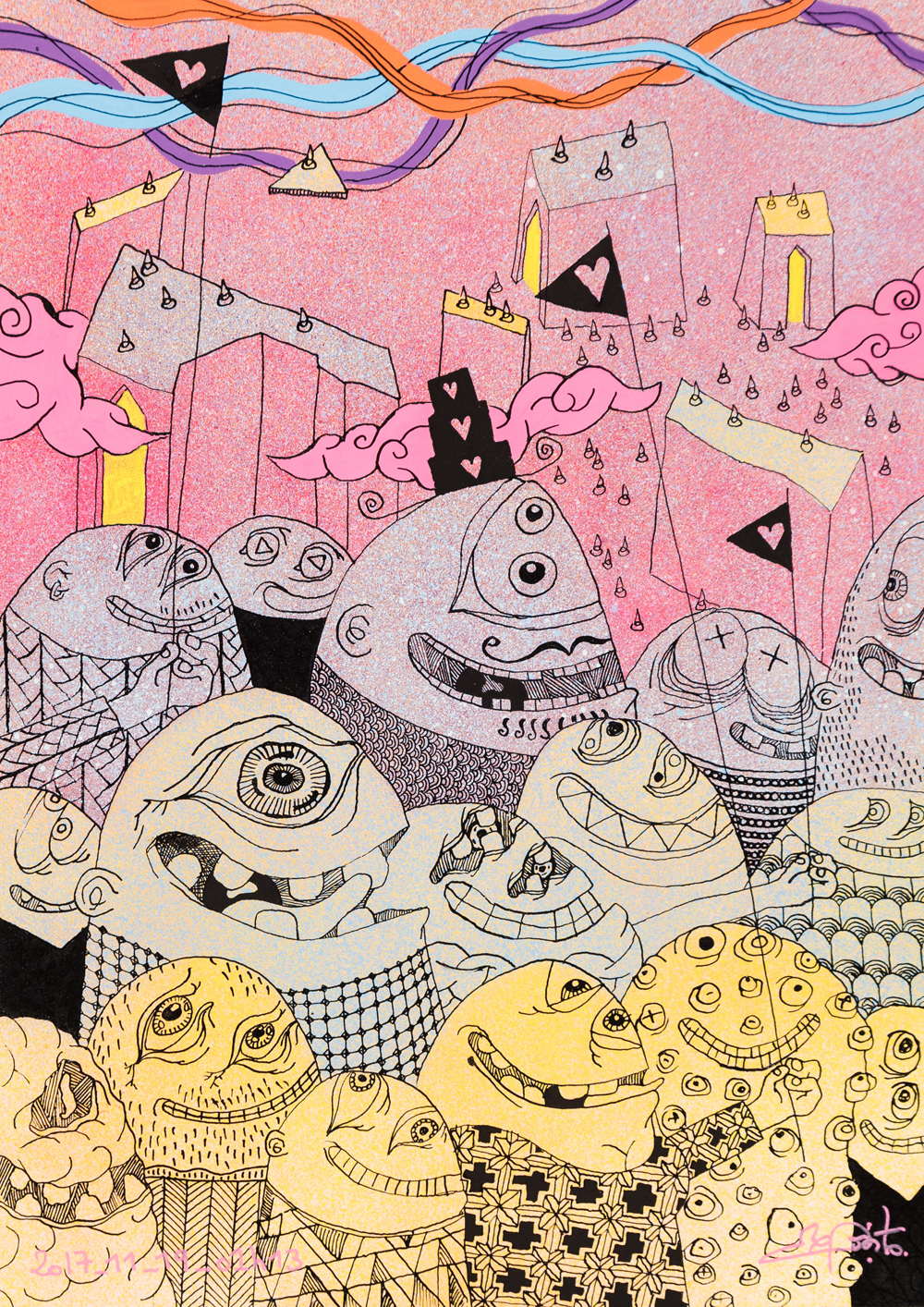 Le rose revient dans son travail comme la couleur récurrente de la cicatrice d'un univers à reconstruire vers la paix entre les hommes. L'artiste conçoit ses installations comme des projets in situ conçus pour révéler les paysages.